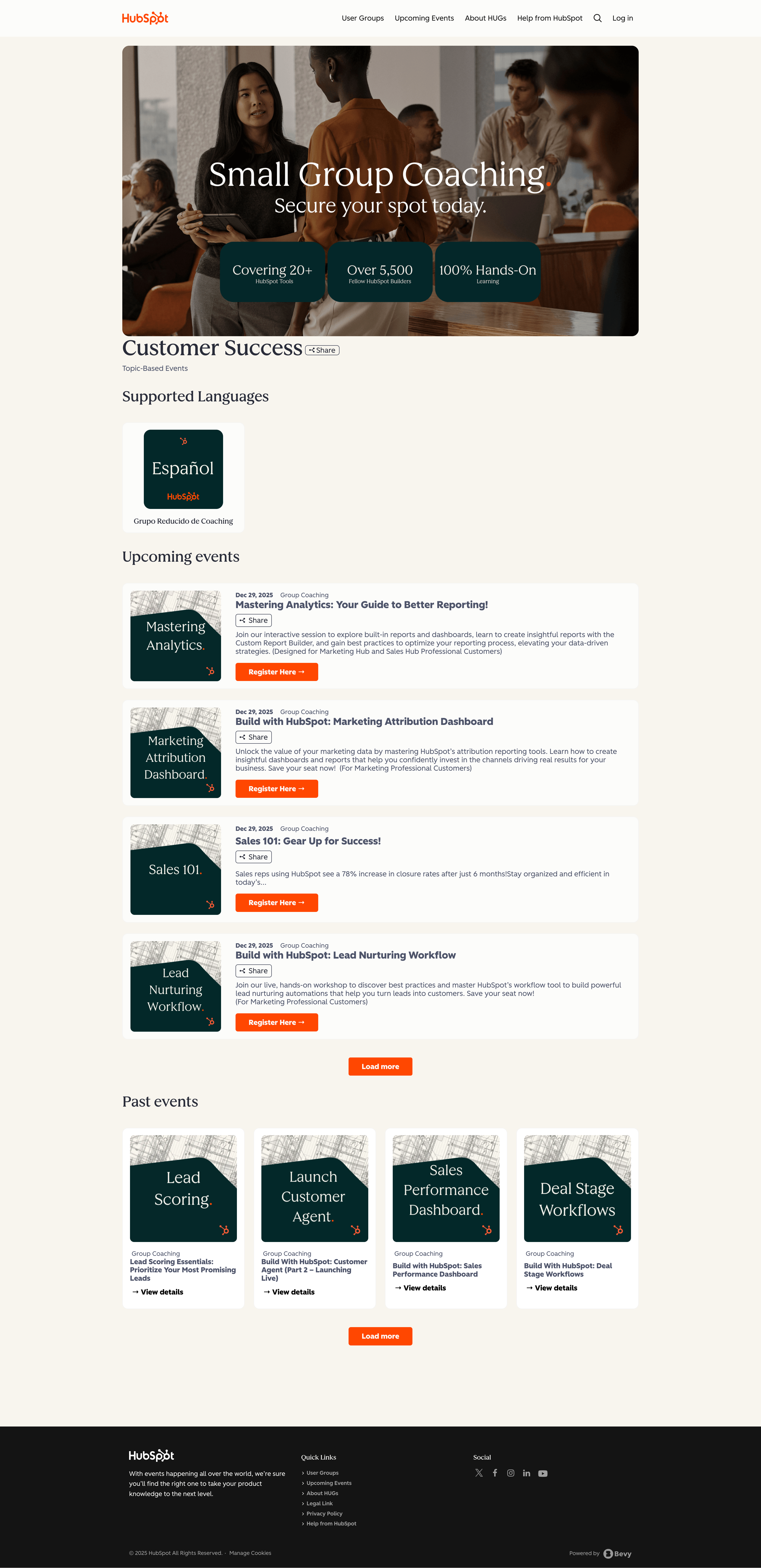 HubSpot's internal event directory experienced unclear UX and friction in the registration flow. The team needed rapid development and support to identify and fix conversion bottlenecks before upcoming campaigns.